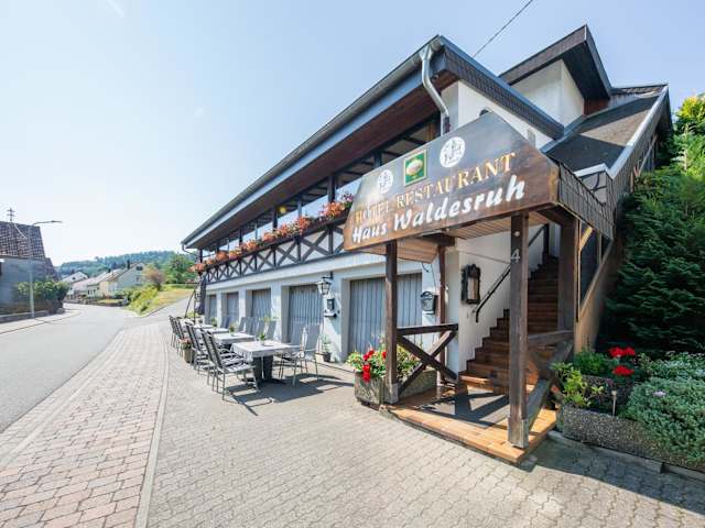 Das Hotel Restaurant Haus Waldesruh liegt idyllisch am Waldrand, umgeben von einer malerischen Landschaft. Die Lage ist perfekt für Naturliebhaber, die gerne wandern, Fahrrad fahren oder Motorradtouren unternehmen möchten. Die Umgebung bietet eine Vielzahl von Wander- und Radwegen, die direkt vom Hotel aus starten. Auch für Familien mit Kindern gibt es in der Nähe viele Aktivitäten und Ausflugsziele.