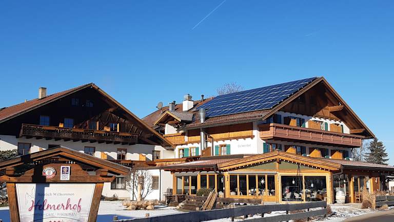 Im Restaurant oder im neu eröffneten Wintergarten des Helmerhofs können Sie köstliche Speisen genießen und dabei den Blick auf die majestätischen Königsschlösser in den Bayerischen Alpen schweifen lassen. Das Restaurant bietet eine vielfältige Auswahl an regionalen und internationalen Gerichten, die mit frischen Zutaten zubereitet werden.