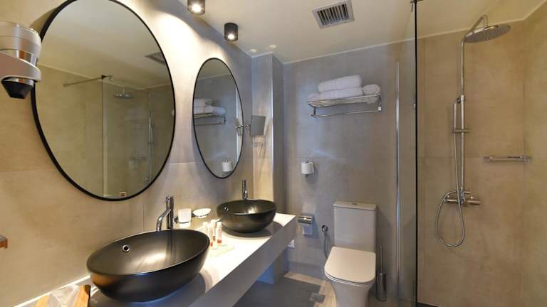 Die Zimmer im Hotel Hermes sind elegant eingerichtet und bieten kostenfreies WLAN. Jedes Zimmer verfügt über einen eigenen Balkon, einige davon mit Meerblick. Die Zimmer sind klimatisiert und mit einem Sitzbereich, einem TV und einem Kühlschrank ausgestattet. Die Badezimmer sind mit einer Badewanne oder einer Dusche sowie einem Haartrockner ausgestattet. Babybetten sind auf Anfrage erhältlich.