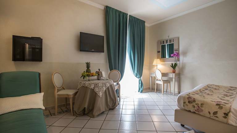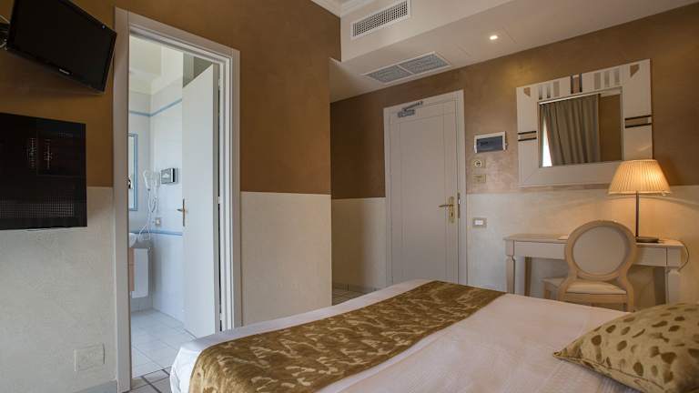 Das Hotel Hermitage verfügt über 51 Zimmer, die auf zwei Etagen verteilt sind. Jedes Zimmer ist komfortabel eingerichtet und mit Annehmlichkeiten wie Klimaanlage, Heizung, Minibar, Safe, Flachbildfernseher, WLAN und einem eigenen Balkon oder einer Terrasse ausgestattet. Die Badezimmer bieten eine Dusche oder eine Badewanne sowie einen Haartrockner und kostenlose Kosmetikartikel. Rollstuhlgerechte Zimmer sind auf Anfrage verfügbar.