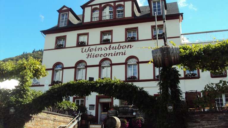 Das Hotel Hieronimi in Cochem ist ein traditionelles, familiengeführtes Hotel, das direkt an der Mosel-Promenade liegt und einen herrlichen Blick auf die Reichsburg bietet. Die geschmackvoll eingerichteten Zimmer, die Terrasse am Fluss und die gemütliche Weinstube machen den Aufenthalt zu einem unvergesslichen Erlebnis. Genießen Sie köstliche Speisen und erfrischende Getränke im Restaurant und kosten Sie die hauseigenen Weine in der Weinstube. Kostenlose Parkplätze und eine Garage für Fahrräder/Motorräder stehen zur Verfügung.