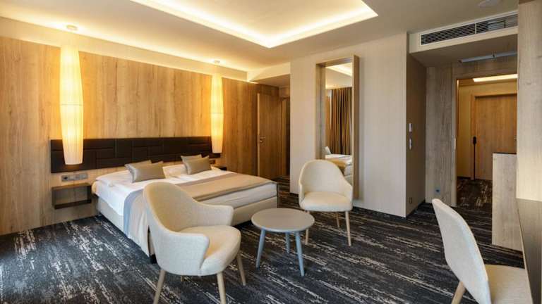 Das Hotel Hills in Stará Lesná bietet einen hohen Komfort und eine wunderschöne Lage in den Bergen der Hohen Tatra. Hier erwarten Sie stilvolle Zimmer und Suiten mit herrlichem Bergblick sowie ein exzellenter Service. Entspannen Sie im Wellnesscenter mit Entspannungsbecken, Massagedüsen, Saunen und einem Whirlpool. Ein perfekter Ort, um den Alltagsstress hinter sich zu lassen und die Natur zu genießen.