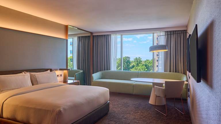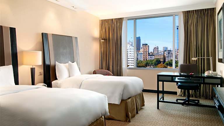 Die komfortablen und geräumigen Zimmer im Hilton Buenos Aires sind im klassischen Stil eingerichtet und verfügen über Teppichboden. Sie bieten moderne Annehmlichkeiten und einen herrlichen Blick auf die Stadt oder den Fluss. Die Executive Zimmer bieten zudem exklusiven Zugang zur Executive Lounge.