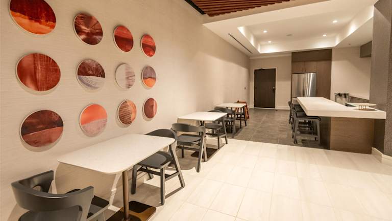 Das Hilton Arlington National Landing bietet ein Restaurant, das gesunde Gerichte zum Frühstück, Mittag- und Abendessen serviert. Das Restaurant serviert auch Starbucks-Kaffee.