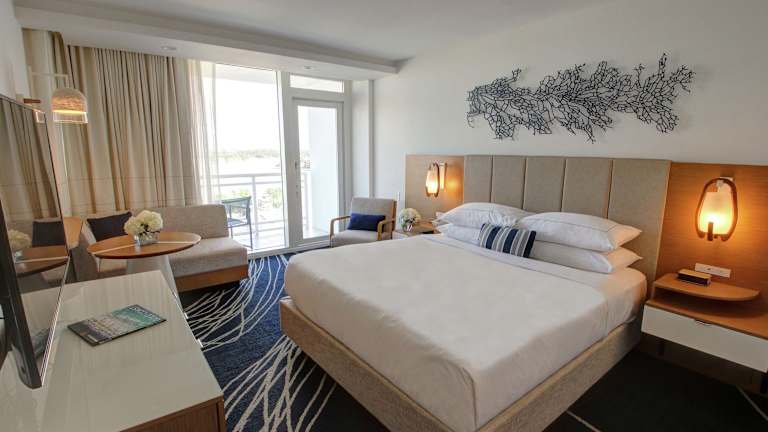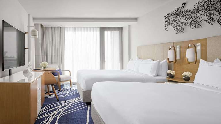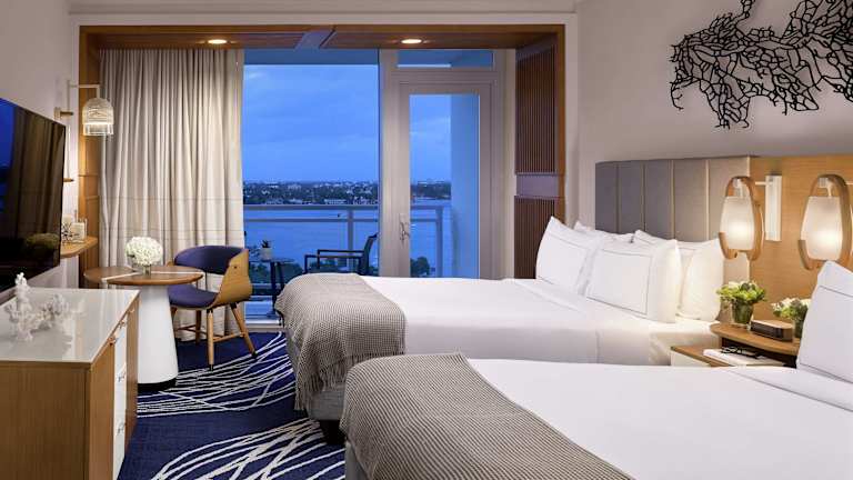 Die Zimmer im Hilton Fort Lauderdale Marina sind geräumig und elegant gestaltet. Sie bieten luxuriöse Bettwäsche, deckenhohe Fenster und einen Flachbild-TV. Jedes Zimmer ist mit modernen Annehmlichkeiten ausgestattet und bietet einen komfortablen Rückzugsort für die Gäste.