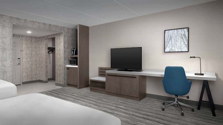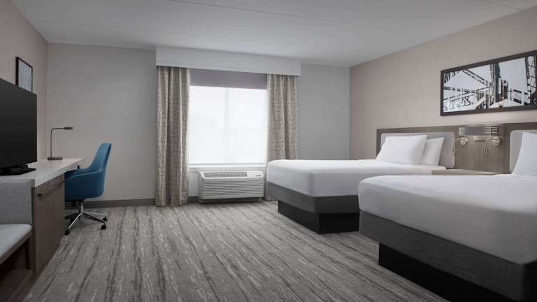 Das Hotel verfügt über 104 Nichtraucherzimmer, die alle mit modernen Annehmlichkeiten wie Kaffeemaschine, Mikrowelle und Minikühlschrank ausgestattet sind. Jedes Zimmer bietet auch Kabel-TV und Filme sowie einen Schreibtisch für Gäste, die arbeiten müssen.