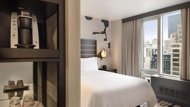 Die Zimmer im Hilton New York Fashion District bieten Ihnen einen komfortablen Rückzugsort inmitten des geschäftigen Treibens der Stadt. Jedes Zimmer verfügt über moderne Annehmlichkeiten wie WLAN, einen Flachbild-Kabel-TV und eine iPod-Dockingstation. Die Zimmer sind geschmackvoll eingerichtet und bieten Ihnen einen erholsamen Schlaf nach einem langen Tag in der Stadt.