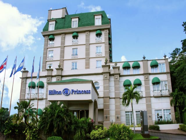 Das Hilton Princess San Pedro Sula ist ein stilvolles Hotel im Herzen des Geschäftsviertels von San Pedro Sula. Hier können Sie sich auf einen erholsamen Aufenthalt mit einem Außenpool und einem gut ausgestatteten Fitnessraum freuen. Die geräumigen Zimmer bieten modernen Komfort und eine schöne Aussicht auf die Stadt oder den Pool. Genießen Sie köstliche internationale und regionale Küche im Restaurant Garden Court und entspannen Sie sich bei Live-Musik in der englischen Bar Clancy. Die Lage des Hotels ist ideal, nur wenige Gehminuten vom Einkaufszentrum City Mall und der Kathedrale San Pedro entfernt. Kostenlose Parkplätze stehen Ihnen zur Verfügung.