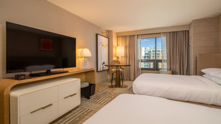 Die Zimmer im Hilton San Diego Gaslamp Quarter sind komfortabel und bieten modernen Komfort. Jedes Zimmer verfügt über einen Schreibtisch, einen Sitzbereich und ein 42-Zoll-Flachbild-Kabel-TV. Zur weiteren Ausstattung gehören eine Kaffeemaschine und ein Haartrockner. Die Suiten mit einem Schlafzimmer bieten zusätzlich ein separates Wohnzimmer mit Schlafsofa.