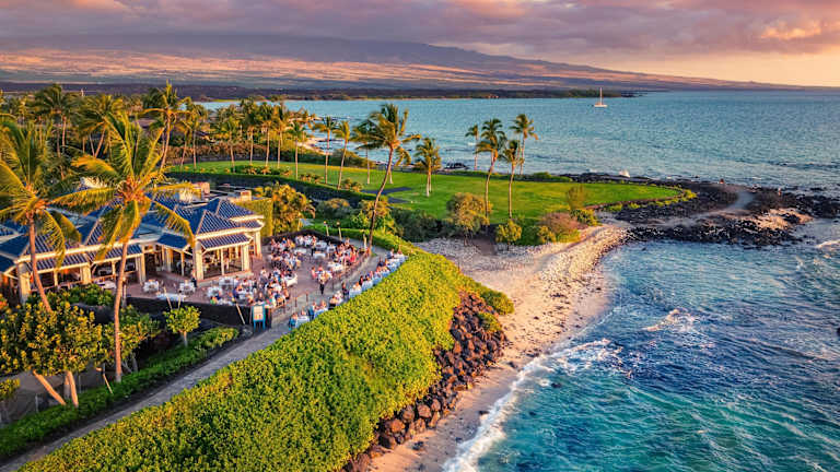 Das Hilton Waikoloa Village liegt direkt am Meer im Resort Waikoloa Beach. Die Lage ist ideal für einen Strandurlaub und bietet auch den Zugang zu den weltberühmten Golfplätzen Kings in Waikoloa und The Beach Waikoloa. Die Umgebung ist von tropischen Gärten und einer malerischen Landschaft geprägt und lädt zu Spaziergängen und Erkundungen ein. Der Flughafen Kona International Airport ist ca. 31 km entfernt.