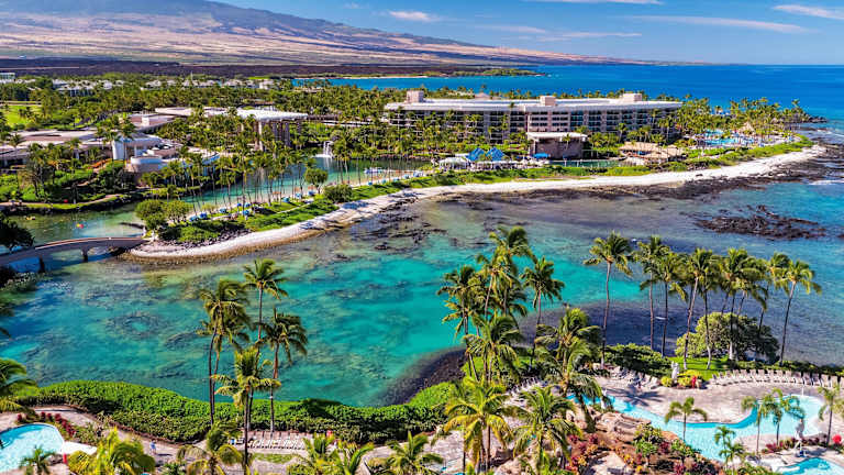 Das Hilton Waikoloa Village bietet eine beeindruckende Urlaubserfahrung auf einer Fläche von 25 Hektar im Resort Waikoloa Beach. Mit atemberaubendem Blick auf den Pazifischen Ozean und die Waialua Bay, tropischen Gärten und einer Vielzahl von Freizeiteinrichtungen wie Golfplätzen und Pools, ist dieses Hotel der perfekte Ort für einen erholsamen und unterhaltsamen Urlaub.