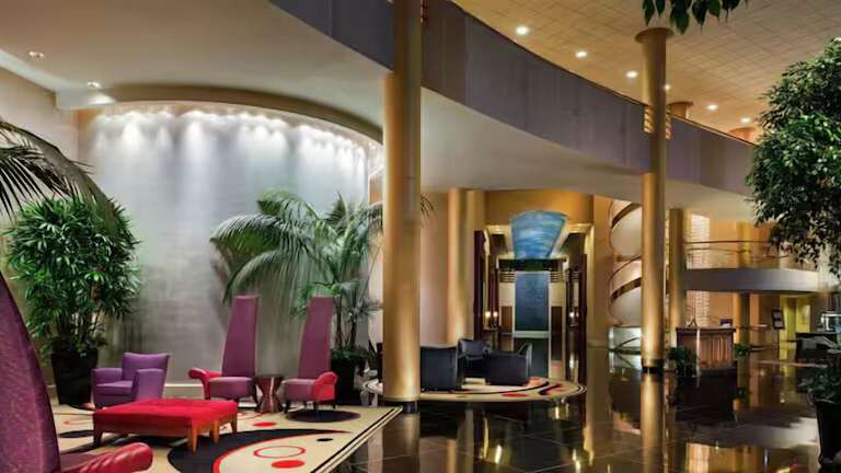 Das Hilton Washington Dulles Airport Hotel liegt in Herndon, nur 8 km vom internationalen Flughafen Washington Dulles entfernt. Die Lage des Hotels ermöglicht einen bequemen Zugang zum Flughafen und ist somit ideal für Geschäftsreisende oder Urlauber, die einen frühen oder späten Flug haben. Das Stadtzentrum von Arlington und der Nationalfriedhof Arlington sind etwa 39 km entfernt.