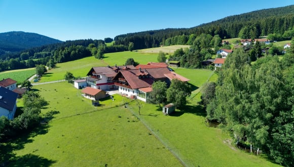Umgeben vom satten Grün der Wälder und Wiesen um das Hotel. In mitten des Städtedreiecks Viechtach, Deggendorf und Straubing ca. 15-20 min entfernt vom Autobahnkreuz Deggendorf. Oder wenn man es einfach sagt weit weg und trotzdem mittendrin :-)