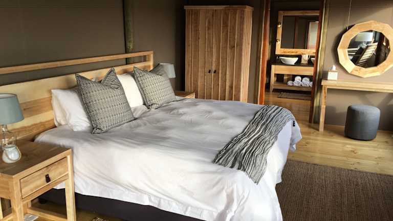 Die Lodges der Hlosi Game Lodge bieten luxuriöse Unterkünfte mit exklusiven Möbeln und einer eigenen Terrasse. Die Suiten sind geräumig und verfügen über klimatisierte Zimmer, Kühlschränke und komfortable Badezimmer mit Badewannen.