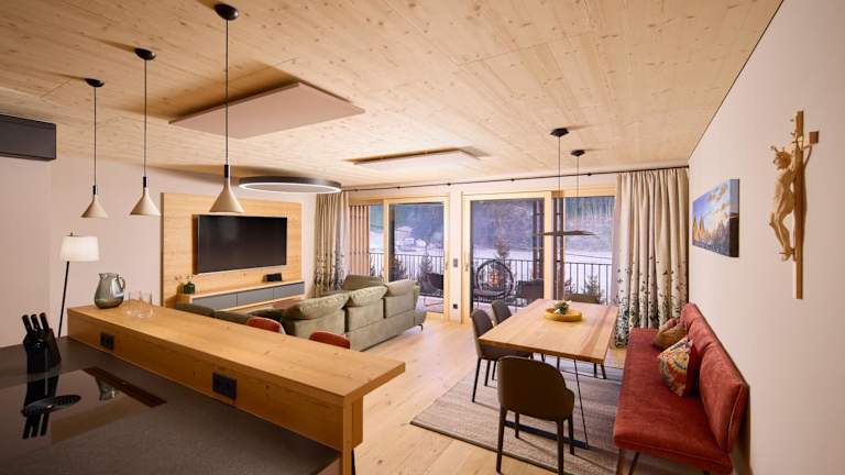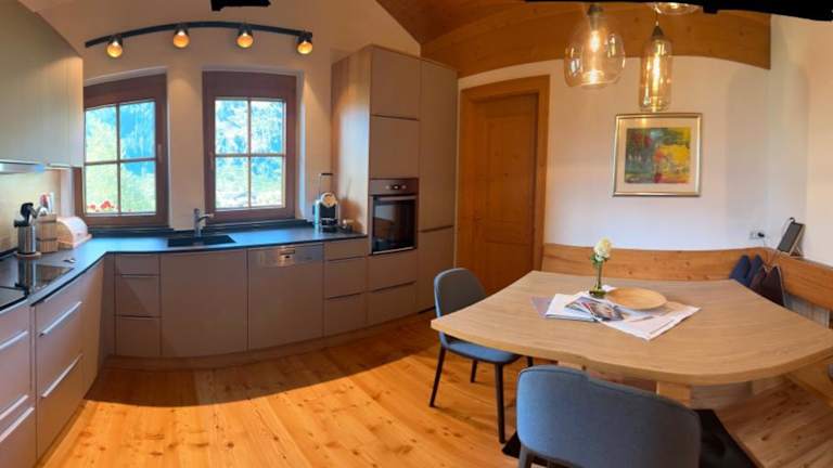 Die Apartments im Hochfeldhof sind im traditionellen Landhausstil eingerichtet und bieten einen gemütlichen Rückzugsort nach einem Tag voller Aktivitäten. Die Apartments verfügen über Holzmöbel, Holzböden und holzgetäfelte Wände und Decken, die eine warme und einladende Atmosphäre schaffen. Jedes Apartment verfügt über eine voll ausgestattete Küche, ein Wohnzimmer mit Sat-TV, ein eigenes Badezimmer und einen Balkon. Einige Apartments befinden sich im Nebengebäude, das nur 70 m entfernt ist.