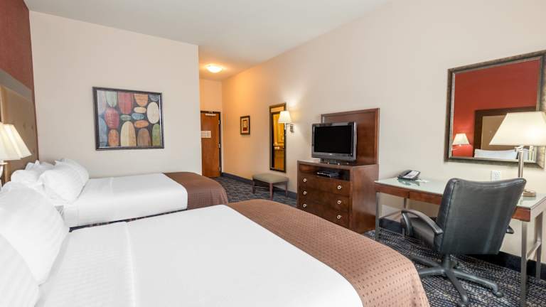 Die Zimmer im Holiday Inn Hotel & Suites Grand Junction-Airport sind gemütlich eingerichtet und verfügen über dunkle Holzmöbel und kräftige rote Farben. Kostenloses WLAN, ein Flachbild-Kabel-TV und eine Kaffeemaschine sind in jedem Zimmer vorhanden. Die barrierefreien Zimmer bieten ein rollstuhlgerechtes Badezimmer für zusätzlichen Komfort.