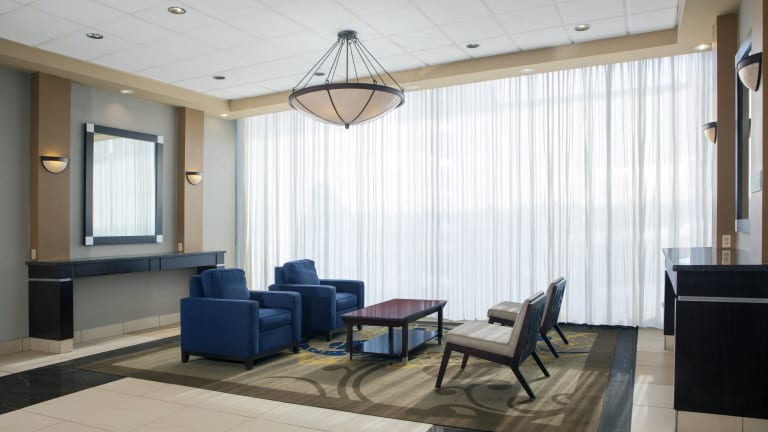Das Holiday Inn Binghamton-Downtown Hawley Street ist ein zentral gelegenes Hotel im Geschäftsviertel von Binghamton. Es bietet seinen Gästen ein eigenes Restaurant, einen Innenpool und kostenloses WLAN. Die Zimmer sind komfortabel eingerichtet und einige verfügen über einen kleinen Kühlschrank und eine Mikrowelle. Genießen Sie amerikanische Küche und einen schönen Blick auf den Fluss Chenango River im hoteleigenen Café Select Restaurant. Die Broome County Arena ist nur wenige Gehminuten entfernt, und der Zoo Ross Park ist in kurzer Fahrtzeit erreichbar.