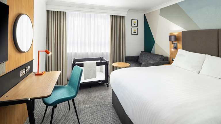 Das Holiday Inn Gloucester - Cheltenham verfügt über moderne und komfortable Zimmer, die mit allen Annehmlichkeiten ausgestattet sind, um einen angenehmen Aufenthalt zu gewährleisten. Jedes Zimmer verfügt über eine Klimaanlage, ein bequemes Bett und ein eigenes Badezimmer mit Dusche oder Badewanne. Zur Ausstattung gehören auch ein Safe, ein Schreibtisch, ein Fernseher und kostenfreies WLAN.