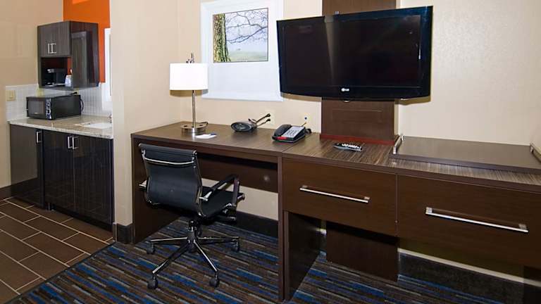 Die Zimmer im Holiday Inn Express Fulton sind farbenfroh gestaltet und bieten eine komfortable Ausstattung für einen angenehmen Aufenthalt. Jedes Zimmer verfügt über einen 32-Zoll-Flachbild-Kabel-TV, Kaffeezubehör und einen Kühlschrank. Die Gäste können sich hier wie zu Hause fühlen und alle Annehmlichkeiten genießen, die sie für einen erholsamen Aufenthalt benötigen.