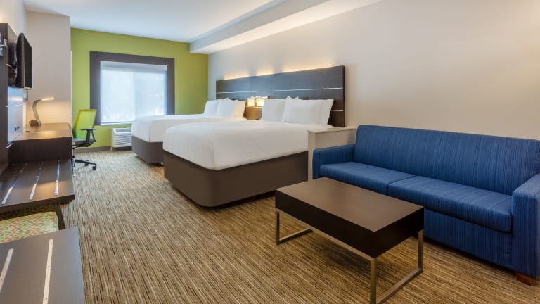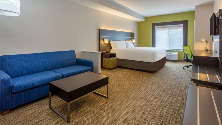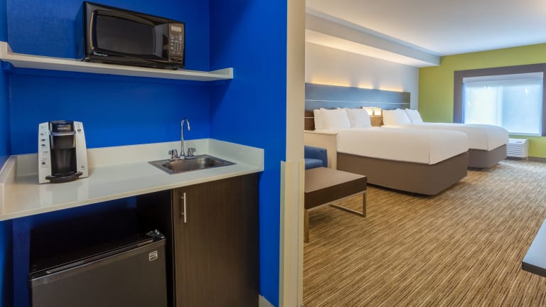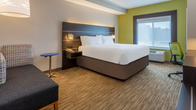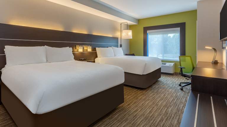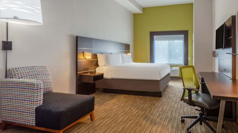 Die Zimmer im Holiday Inn Express Hotel & Suites Charlotte - Arrowood sind komfortabel und mit modernen Annehmlichkeiten ausgestattet. Jedes Zimmer verfügt über eine Mikrowelle, einen Mini-Kühlschrank und einen Schreibtisch. Ein Flachbildfernseher mit Satellitenempfang und Pay-per-View-Option sowie kostenfreies WLAN sorgen für Unterhaltung und Konnektivität. Die rollstuhlgerechten Zimmer verfügen über barrierefreie Badezimmer für zusätzlichen Komfort.