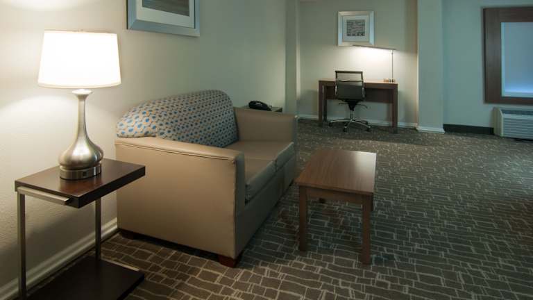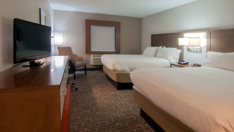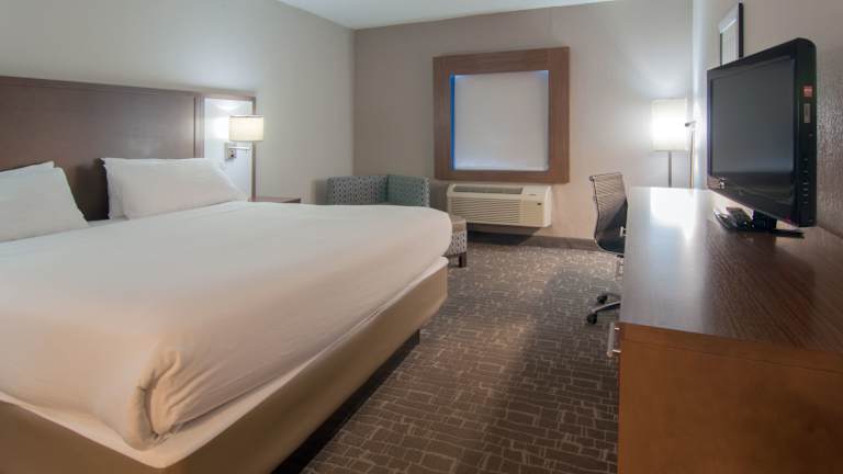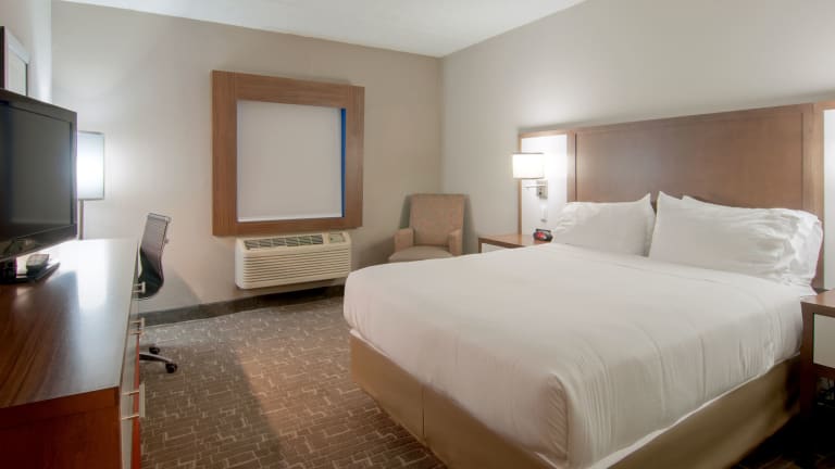 Die Zimmer im Holiday Inn Express & Suites sind modern und komfortabel eingerichtet. Sie verfügen über Annehmlichkeiten wie einen Flachbild-Kabel-TV und kostenfreies WLAN. Einige Zimmer bieten zudem einen separaten Sitzbereich zum Entspannen. Jedes Zimmer verfügt über ein eigenes Bad mit einer Badewanne oder einer Dusche sowie kostenfreien Pflegeprodukten und einem Haartrockner.