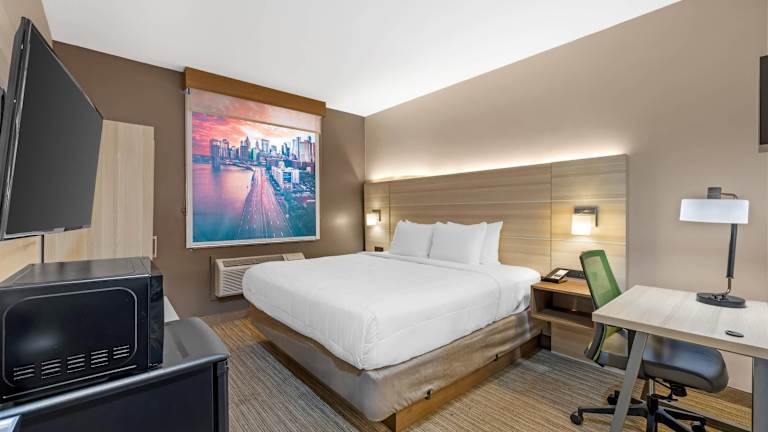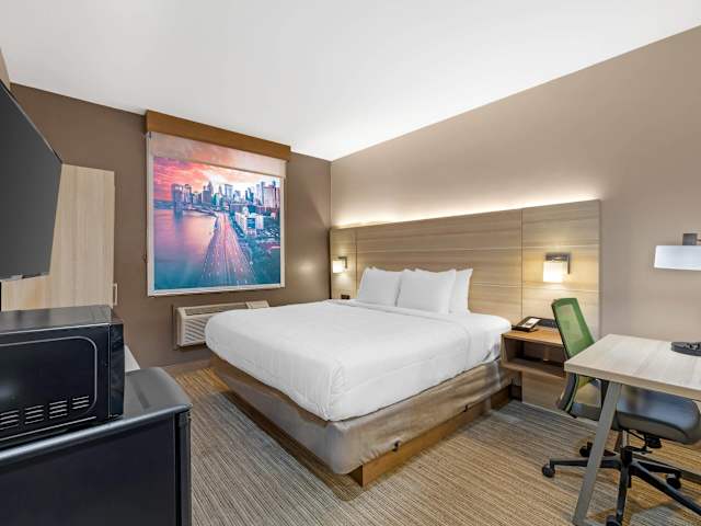 Das Holiday Inn Express Staten Island West bietet seinen Gästen einen angenehmen Aufenthalt in New York City. Das Hotel zeichnet sich durch seine gute Lage in der Nähe des Strandes aus und bietet eine Vielzahl von Annehmlichkeiten wie kostenloses WLAN, Parkplätze und einen Transferservice. Die Zimmer sind komfortabel ausgestattet und verfügen über moderne Annehmlichkeiten wie Klimaanlage, Fernseher und WLAN. Für Entspannung und Unterhaltung sorgen der Innenpool und das Fitnessstudio. Das Hotel bietet auch verschiedene Aktivitäten wie Radfahren, Golfen und Bowling. Das Frühstück ist im Übernachtungspreis enthalten.