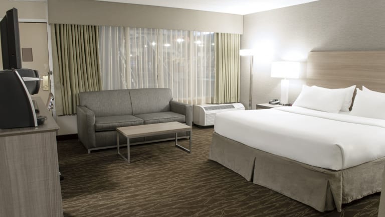 Die 310 Nichtraucherzimmer des Holiday Inn Fargo erstrecken sich über 7 Etagen und sind bequem mit dem Aufzug erreichbar. Jedes Zimmer ist geräumig und verfügt über Annehmlichkeiten wie Kaffee- und Teezubereitungsmöglichkeiten, einen Schreibtisch und ein eigenes Badezimmer mit einem Haartrockner.
