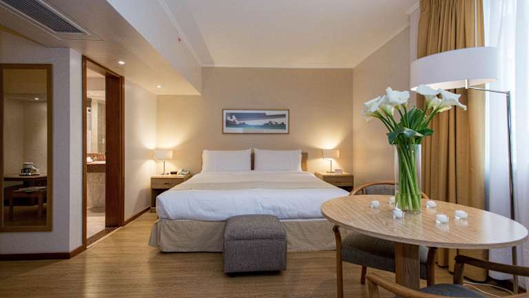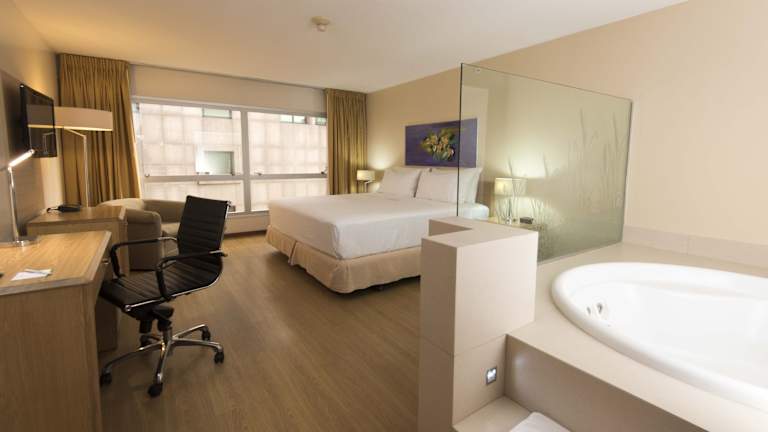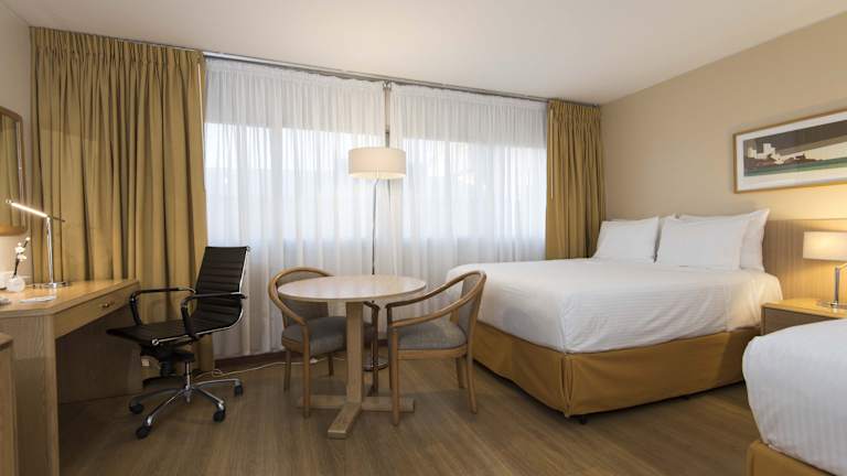 Die Zimmer im Holiday Inn Montevideo sind hell und geräumig und bieten eine stilvolle Einrichtung in sanften Farbtönen. Alle Zimmer verfügen über Arbeitsschreibtische und Minibars. Einige Zimmer haben zudem große Sitzbereiche und private Whirlpools.