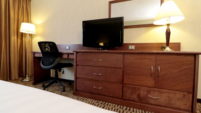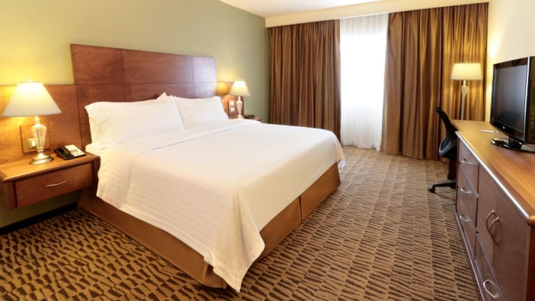 Die klimatisierten Zimmer im Holiday Inn Monterrey Norte bieten den Gästen einen komfortablen und angenehmen Aufenthalt. Mit kostenfreiem WLAN, Teppichboden, Heizung und einem Schreibtisch ausgestattet, bieten die Zimmer alles, was Sie für einen entspannten Aufenthalt benötigen. Zur weiteren Ausstattung gehören ein Flachbild-Kabel-TV, ein Radio, ein Telefon, eine Kaffeemaschine und ein Bügeleisen/-brett. Das eigene Badezimmer verfügt über eine Dusche, einen Haartrockner und kostenfreie Pflegeprodukte.