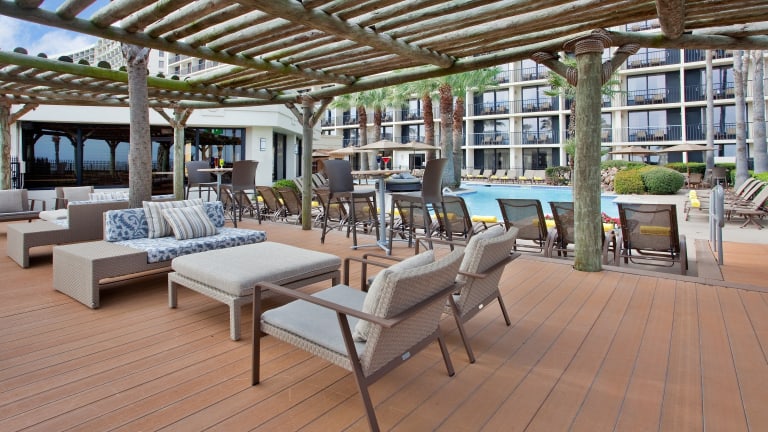 Das Jetty Restaurant im Hotel bietet eine Auswahl an köstlichen amerikanischen Gerichten für Frühstück, Mittag- und Abendessen. Gäste können auch in der B'Jiggers Lounge entspannen, wo sie bei Drinks, Tanz und Live-Musik den Abend ausklingen lassen können.