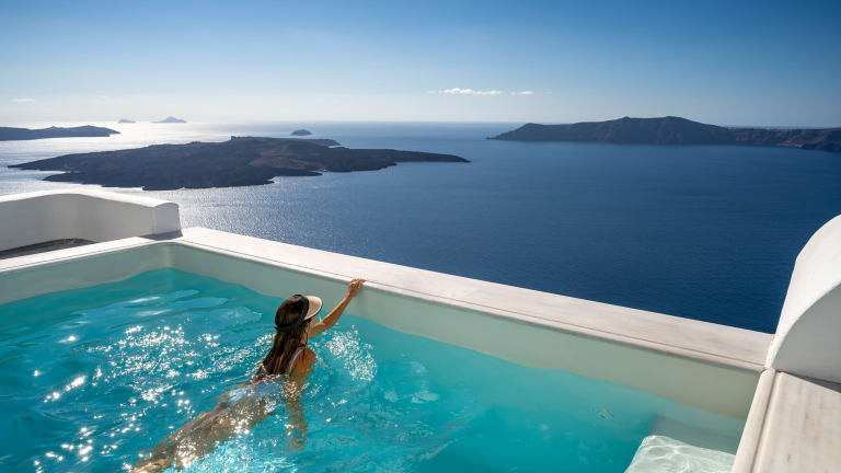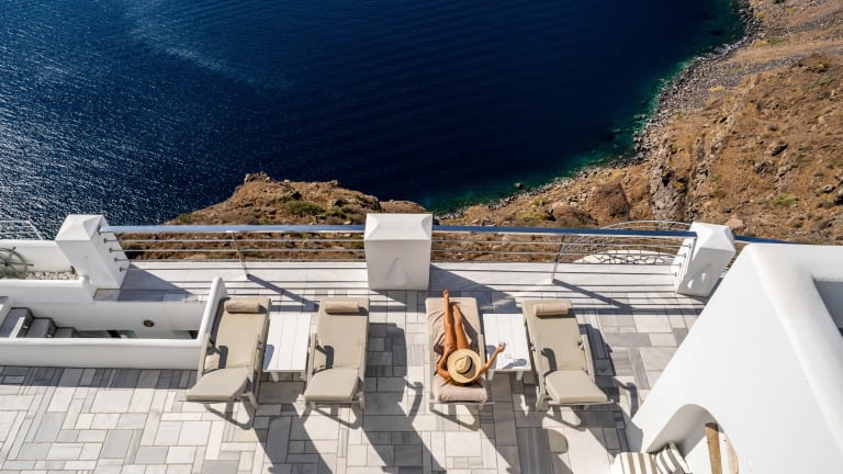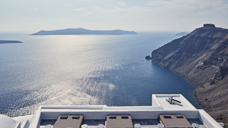 Das preisgekrönte Hotel Homeric Poems in Firostefani bietet luxuriöse Unterkünfte mit einem atemberaubenden Blick auf die Caldera. Die Zimmer sind einfach, aber elegant im kykladischen Stil gestaltet und bieten einen komfortablen Sitzbereich. Der preisgekrönte Küchenchef bereitet traditionelle griechische Spezialitäten aus regionalen Produkten zu, die auf der eigenen Terrasse serviert werden. Entspannen Sie am Pool mit Blick auf den Vulkan und genießen Sie die ruhige Atmosphäre dieses einzigartigen Hotels.
