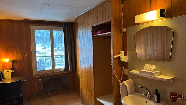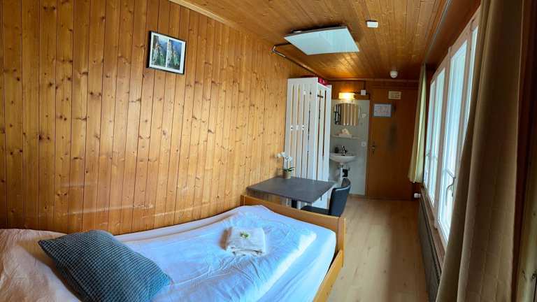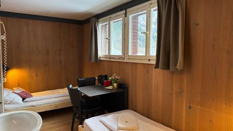 Das Hotel Hornerpub in Lauterbrunnen bietet eine einfache, aber gemütliche Unterkunft in der Nähe des Staubbachfalls. Hier können Sie in den Etagenbetten übernachten und die holzvertäfelten Wände verleihen den Zimmern einen rustikalen Charme. Kostenloses WLAN und Parkmöglichkeiten stehen zur Verfügung. Das Hotel verfügt außerdem über ein Pub und in der Umgebung finden Sie Restaurants und Geschäfte. Die Lage ist ideal für Basejumping-Enthusiasten und der Bahnhof Lauterbrunnen ist bequem zu Fuß erreichbar.