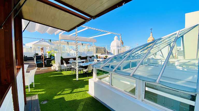 Das Hotel Las Cortes De Cádiz verfügt über eine Dachterrasse, auf der die Gäste entspannen und die herrliche Aussicht auf die Stadt genießen können. Hier können Sie sich auch sonnen und die frische Luft genießen. In der Umgebung gibt es viele Möglichkeiten für Aktivitäten wie Wandern und Wassersport. Das freundliche Personal des Hotels steht den Gästen gerne zur Verfügung, um bei der Organisation von Aktivitäten und Ausflügen zu helfen.