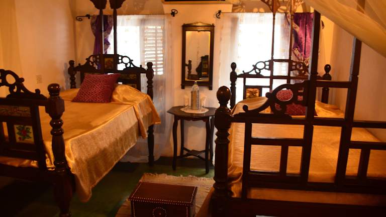 Das Shaba Boutique Hotel befindet sich in einer idealen Lage im Herzen von Stone Town, Sansibar. In nur 500 m Entfernung finden Sie den Obst- und Fischmarkt von Darajan, wo Sie frische Produkte und lokale Spezialitäten entdecken können. Die zentrale Lage des Hotels ermöglicht es Ihnen, in kurzer Zeit zu Fuß zu den wichtigsten Sehenswürdigkeiten der Stadt zu gelangen. Das Museum House of Wonders ist nur 2 Gehminuten entfernt und die Fordahani Gardens erreichen Sie nach einem 5-minütigen Spaziergang. Der internationale Flughafen Sansibar ist bequem in nur 15 Fahrminuten erreichbar.
