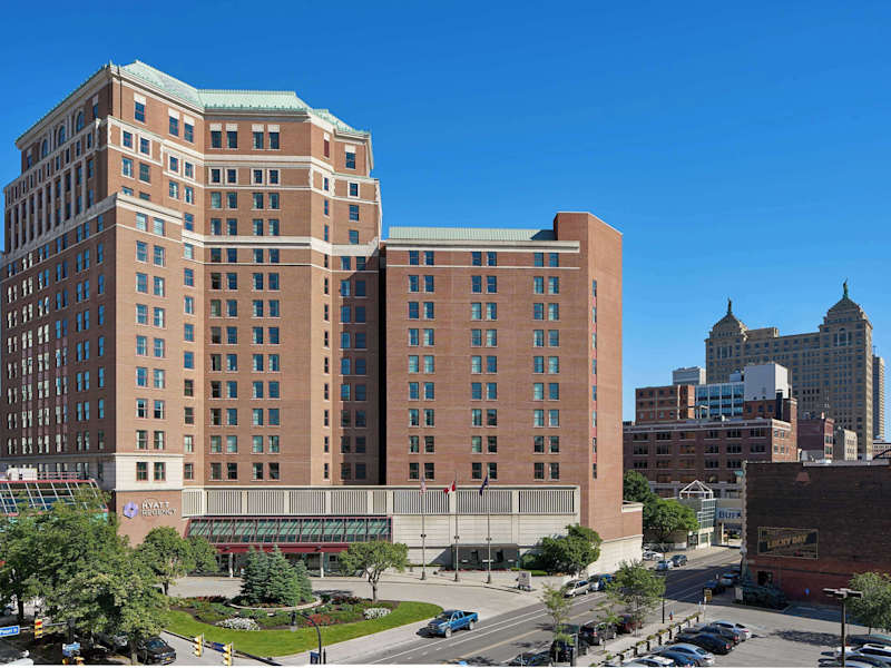 Das Hyatt Regency Buffalo ist ein modernes Hotel in der Innenstadt von Buffalo, New York, das sich perfekt für Geschäftsreisende und Urlauber eignet. Mit komfortablen Zimmern, einem 24-Stunden-Fitnesscenter und gastronomischen Einrichtungen bietet das Hotel alles, was Sie für einen angenehmen Aufenthalt benötigen. Die Lage neben dem Buffalo Convention Center macht es auch für Veranstaltungen und Konferenzen attraktiv.