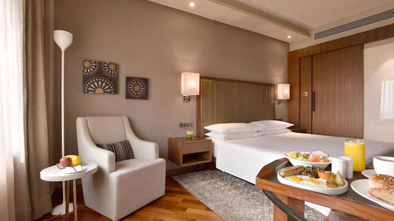 Die klimatisierten Zimmer verfügen über ein Doppel- oder Kingsize-Bett, eine Minibar, einen Safe, einen Kühlschrank und eine Mikrowelle. Jedes Zimmer ist mit einem TV-Gerät, einem DVD-Player und kostenlosem WLAN ausgestattet. Ein eigenes Bad mit Dusche und Badewanne sowie Annehmlichkeiten wie Haartrockner und Bademäntel sind ebenfalls vorhanden. Das Hotel bietet Nichtraucher-, Raucher- und Familienzimmer, einschließlich rollstuhlgerechter Zimmer.