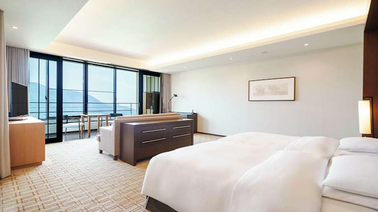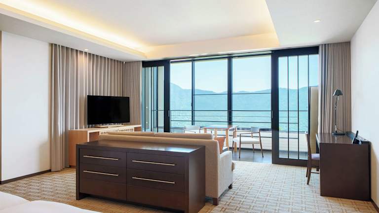 Die Zimmer im Hyatt Regency Hakone Resort and Spa sind geräumig und bieten eine gemütliche Atmosphäre. Die Zimmer verfügen über ein eigenes Marmorbad, einen Balkon mit Panoramafenstern und eine stimmungsvolle Beleuchtung. Zur Ausstattung gehören eine Minibar, ein Sitzbereich am Fenster, eine Kaffeemaschine und ein 40-Zoll-Flachbild-TV mit Blu-ray-Filmen. WLAN ist in allen Zimmern kostenlos verfügbar.
