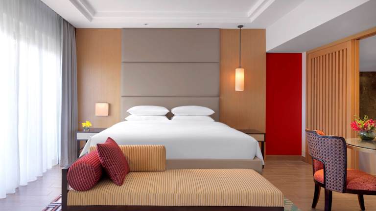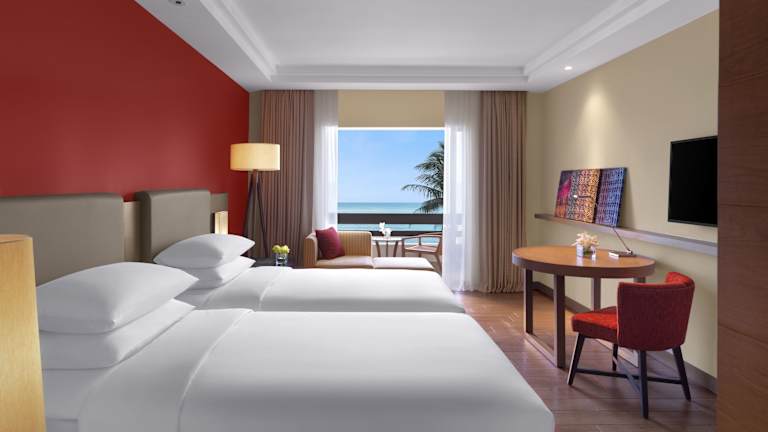 Das Hyatt Regency Kuantan Resort bietet insgesamt 330 Zimmer, die mit Klimaanlage, Safe, Minibar, WLAN und Fernseher ausgestattet sind. Einige Zimmer verfügen über einen Balkon oder eine Terrasse mit Meerblick. Die Unterbringung bietet auch rollstuhlgerechte Zimmer sowie Nichtraucher- und Raucherzimmer.