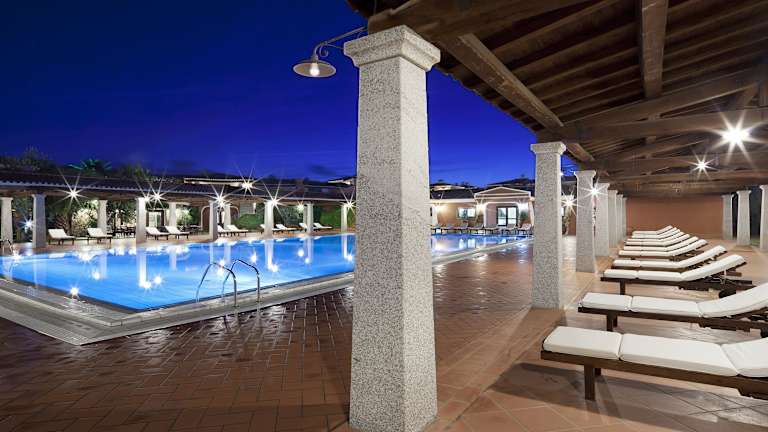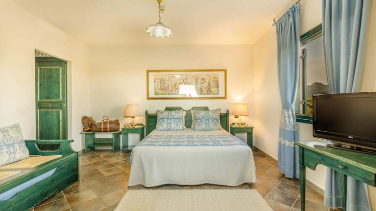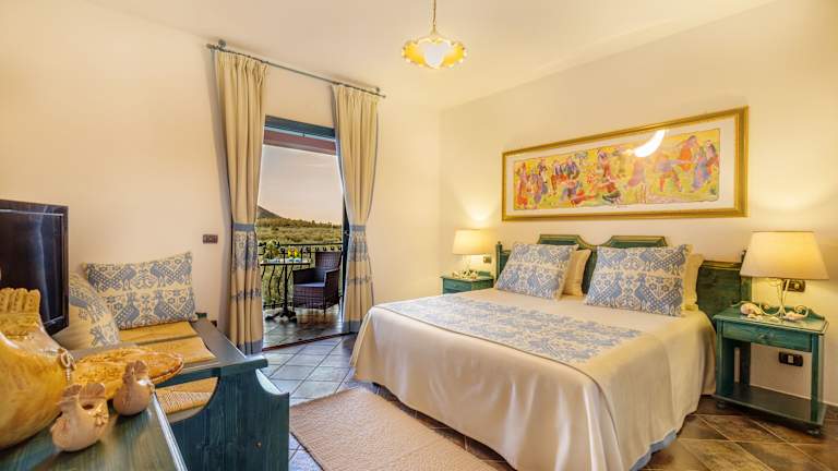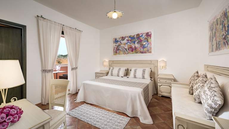 Das Hotel Resort verfügt über typisch sardische Gebäude, die von einer grünen Umgebung aus Palmen und Olivenhainen umgeben sind. Die Zimmer sind gemütlich und komfortabel eingerichtet und bieten Ihnen einen angenehmen Rückzugsort nach einem Tag am Strand oder am Pool.