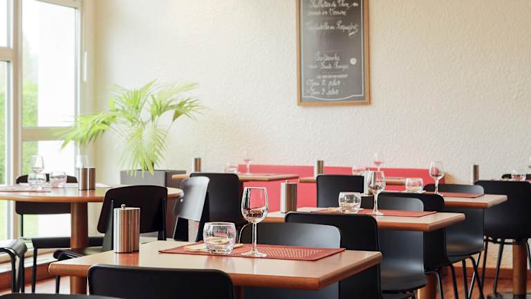 Das Hotel bietet ein reichhaltiges Frühstücksbuffet mit einer Vielzahl von süßen und herzhaften Speisen wie Eiern, Obstsalat, Joghurt und Säften. Zusätzlich werden französische Gebäckstücke und Madeleine-Kuchen sowie ein heißes Getränk und ein Stück Obst zum Mitnehmen angeboten. Außerhalb der regulären Frühstückszeiten steht den Gästen eine leichtere Option ab 04:00 Uhr zur Verfügung. Im Hotelrestaurant Le Dalang können die Gäste traditionelle und regionale französische Küche in einem angenehmen Essbereich genießen. Die Hotelbar Le Trappiste bietet eine entspannte Atmosphäre, um einen Cocktail zu genießen.