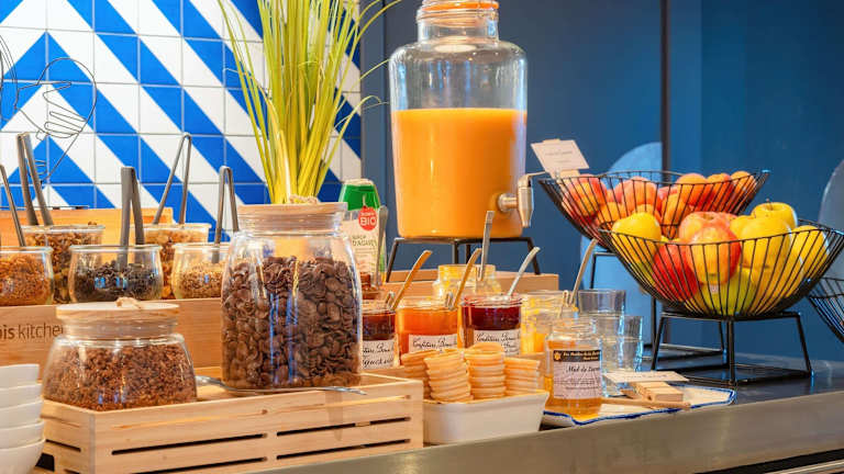 Starten Sie Ihren Tag im ibis Manosque Hotel mit einem leckeren Frühstücksbuffet. Das Buffet bietet eine Auswahl an süßen und herzhaften Speisen, darunter Eier, Obstsalat, Joghurt und Säfte. Zusätzlich werden französische Backwaren und Madeleine-Kuchen, ein heißes Getränk und ein Stück Obst zum Mitnehmen angeboten. Auch außerhalb der regulären Frühstückszeiten können Sie eine leichtere Option ab 04:00 Uhr genießen.