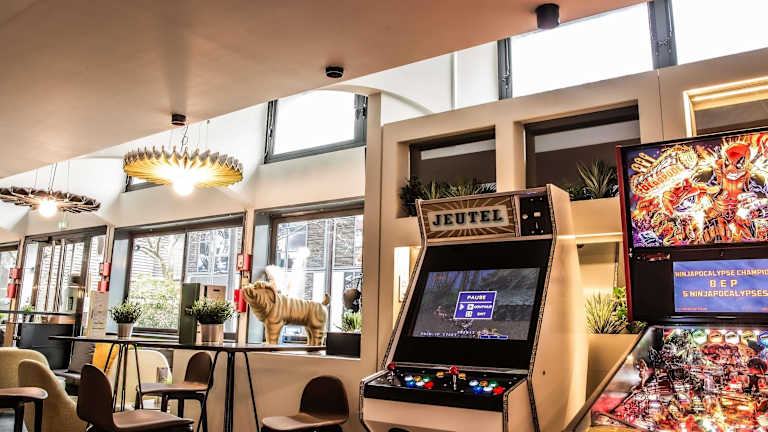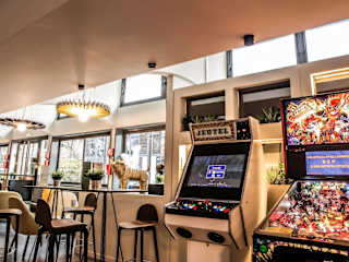 Eine Sonnenterrasse lädt zum Entspannen ein. Es besteht auch die Möglichkeit, Darts im Innenbereich zu spielen.