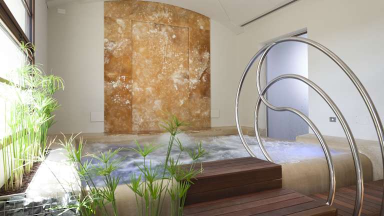 Das Wellnesscenter des Hotels bietet den Gästen eine Vielzahl von Annehmlichkeiten. Dazu gehören eine Sauna, ein Innenpool, ein Türkisches Bad, Erlebnisduschen und ein Whirlpool. Dieser Service ist auf Anfrage und gegen Aufpreis verfügbar und bietet den Gästen die Möglichkeit, sich zu entspannen und zu erholen.