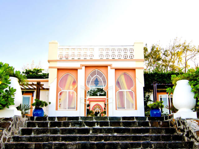 Tagesausflügler werden von einem engagierten Team in Empfang genommen und umsorgt. Sonnenschirme und Sonnenliegen säumen den weißen Sandstrand und große Holztische laden zu einem ungezwungenen Mittagessen oder Barbecue unter freiem Himmel ein. Mit ihrer großen Auswahl an Cocktails und einem der besten Barkeeper der Südostküste erfreut die Bar die Besucher der Insel. Für diejenigen, die besondere Gaumenfreuden suchen, wird eine beeindruckende Auswahl an hausgemachten Rum-Sorten („Rhum arrangé“) präsentiert. Ein kleiner Souvenir Shop rundet das Angebot ab. Insel-Besucher können sich ihren Tag mit verschiedensten Aktivitäten vertreiben – angefangen beim Schnorcheln durch das Korallenriff über Spaziergänge unter den Dächern der hundert Jahre alten Filao-Bäume bis hin zu Tauchgängen im „Blue Bay Marine Reserve“. Die Insel kann auch für abendliche Feierlichkeiten gemietet werden, die in spektakulären Feuerwerken ihren Höhepunkt finden. Nach Sonnenuntergang erstrahlt die Villa im Glanze von „Tausend und einer Nacht“.