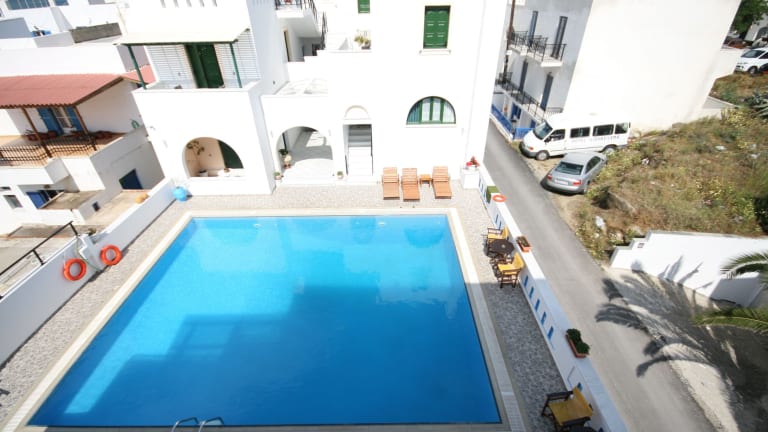 Das Hotel Iliovasilema befindet sich in einer idealen Lage in Naxos Chora, nur 50 m vom beliebten Strand Saint George entfernt. Der Hafen ist ebenfalls nur wenige Gehminuten entfernt, was das Hotel zu einem bequemen Ausgangspunkt für die Erkundung der Insel macht. In der Nähe finden Sie mehrere Restaurants, Bars und Minimärkte, die Ihren Aufenthalt noch angenehmer machen. Der atemberaubende Strand Agios Prokopios ist nur eine kurze Fahrt vom Hotel entfernt und bietet die perfekte Kulisse für einen entspannten Strandurlaub.