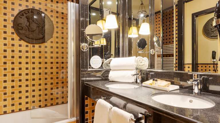 Wir waren zunächst sehr unzufrieden mit unserem Zimmer, da es ein kleines Fenster hatte, das gleich auf eine Mauer blickt. Als wir dann die Zimmer gesehen haben, in die wir (aufpreispflichtig) upgraden hätten können, waren wir dann doch ganz zufrieden. Es ist halt ein altes Gebäude... Ansonsten ist das Haus sehr gepflegt, etwas zu sehr im römischen Stil dekoriert, aber letztlich haben wir gut geschlafen. Ich würde eher 4 als 5 Sterne hier sehen, keine Ahnung wofür es den 5. gab.