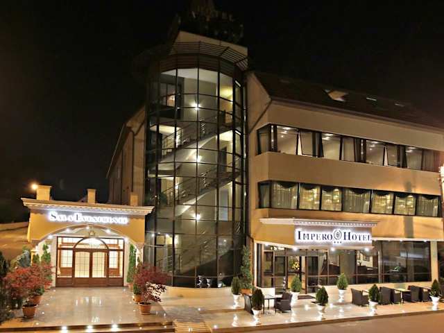Das Hotel Impero verfügt über ein Restaurant, in dem Sie internationale Küche genießen können. Jeden Morgen erwartet Sie ein reichhaltiges Frühstücksbuffet, das Ihnen einen perfekten Start in den Tag bietet. Bei schönem Wetter können Sie auf der Terrasse des Restaurants speisen und die angenehme Atmosphäre genießen.