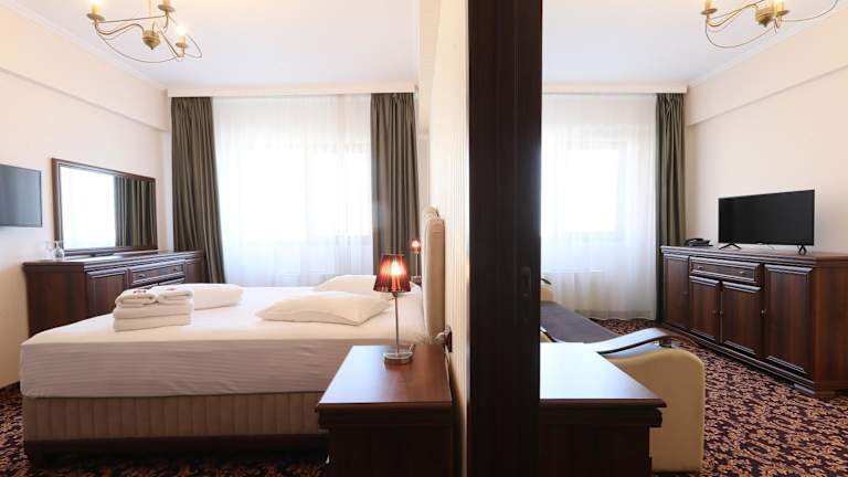 Das Hotel Impero profitiert von seiner verkehrsgünstigen Lage am Decebal Boulevard in Oradea. In unmittelbarer Nähe finden Sie Restaurants, Geschäfte und Sehenswürdigkeiten. Der internationale Flughafen Oradea ist nur 3 km entfernt und bietet eine bequeme Anreisemöglichkeit für internationale Gäste.