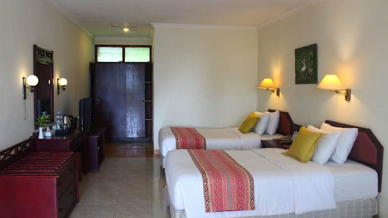Inna Tretes Hotel & Resort bietet eine angenehme Unterkunft mit 70 Zimmern. Es hat eine freundliche Atmosphäre und eine Reihe von Dienstleistungen wie 24-Stunden-Rezeption, Zimmerservice, Garagenstellplätze und Konferenzräume. Die Anlage ist von einem schönen Garten umgeben und verfügt über einen Außenpool mit Kinderbereich sowie einen Spielplatz für die jüngeren Gäste. Es gibt auch Geschäfte im Hotel.
