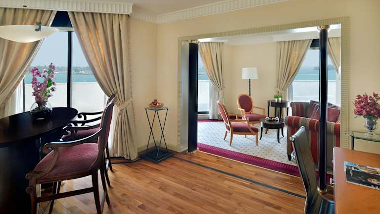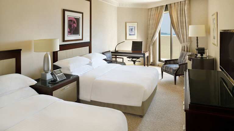Die Zimmer im InterContinental Jeddah sind elegant dekoriert und bieten einen komfortablen Rückzugsort für die Gäste. Jedes Zimmer ist klimatisiert und verfügt über einen Sitzbereich mit einem bequemen Sessel und einem Fernseher mit mehrsprachigen Kanälen. Ein gut beleuchteter Schreibtisch mit Steckdosen und eine Minibar sind ebenfalls vorhanden. Die Zimmer bieten ausreichend Platz und eine angenehme Atmosphäre für einen entspannten Aufenthalt.